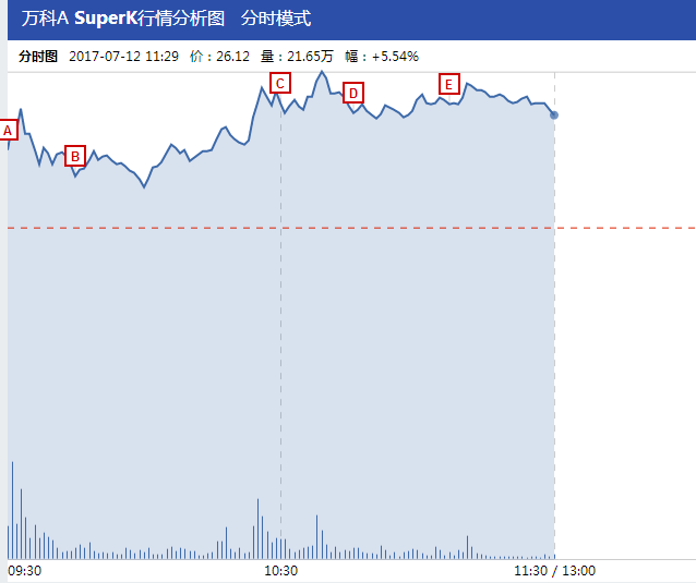 今日早盘,万科A(000002)股价走强,截至发稿,万科A高涨5.54%,报26.35元。