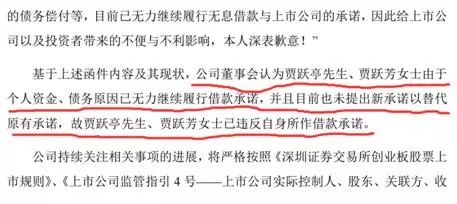 11月11日,乐视退(300104)发布公告称,贾跃亭、贾跃芳因个人资金、债务问题无法履行借款承诺。