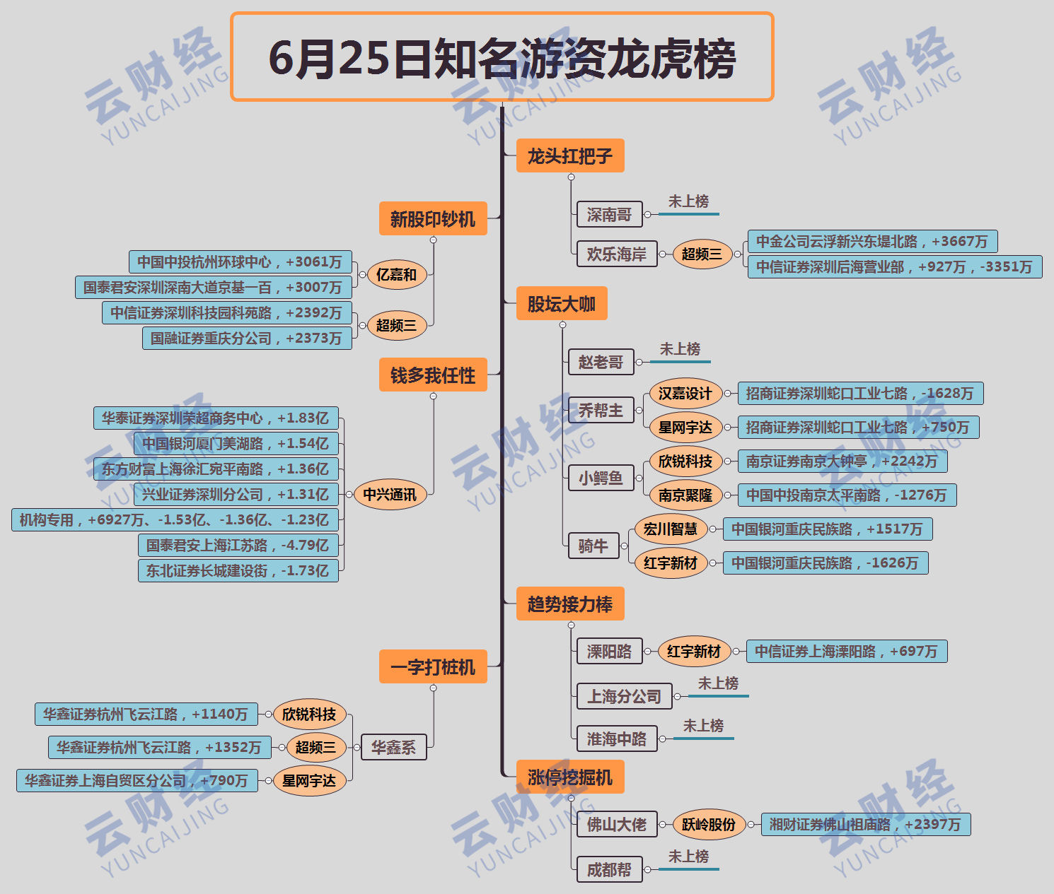 新股亿嘉和(603666)开板回封,中国中投杭州环球中心买入3061万,国君深圳深南大道京基一百买入3007万;前期妖股宏川智慧(002930)2连板,骑牛1517万主封;新股欣锐科技(300745)强势涨停,小鳄鱼买入2242万,华鑫杭州飞云江路买入1140万。