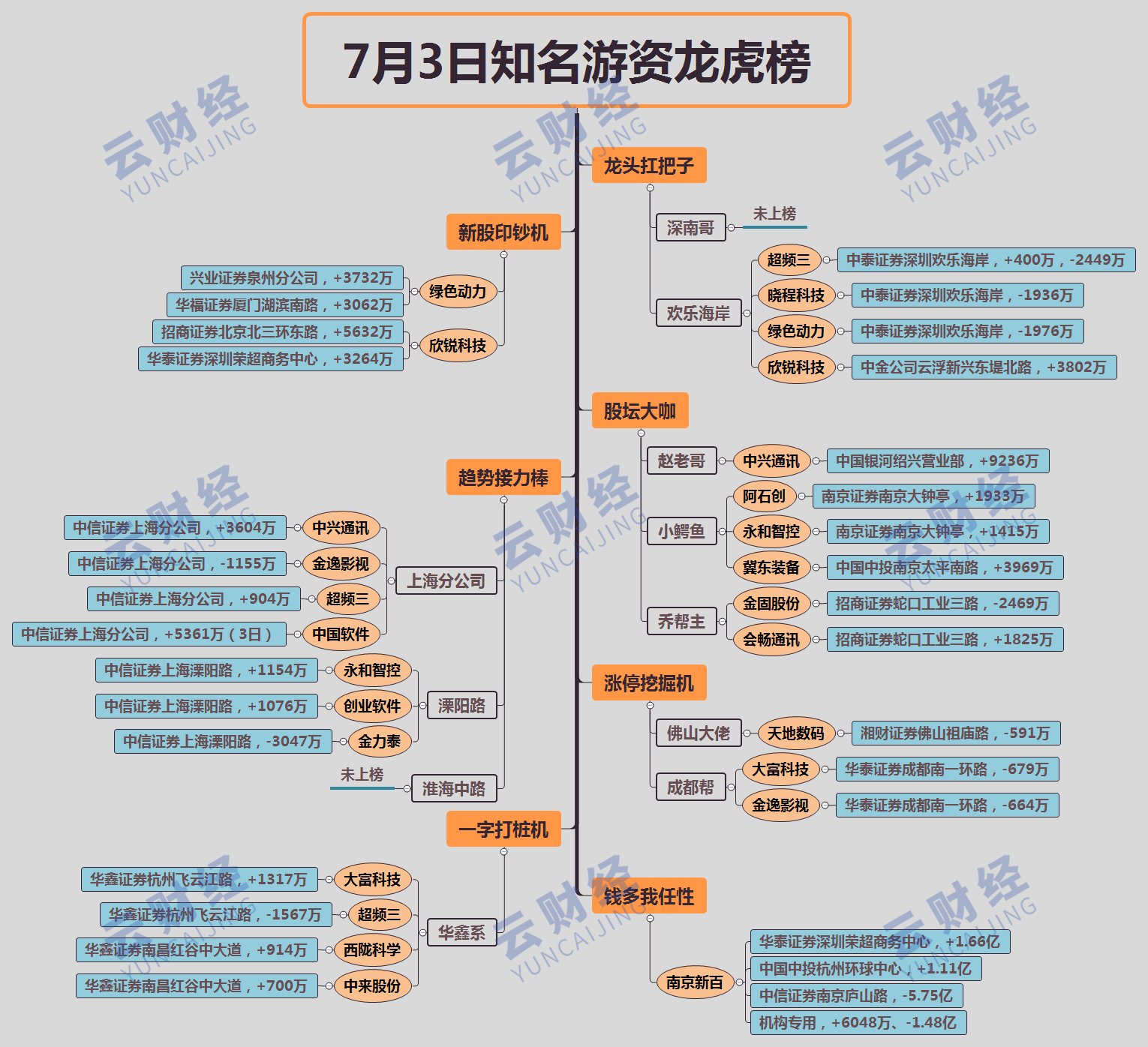 龙虎榜方面,欣锐科技(300745)冲击7板尾盘被砸,全天换手73.72%,招商北京北三环东路买入5632万,欢乐海岸买入3802万,华泰深圳荣超商务中心买入3264万;中兴通讯(000063)尾盘涨停,赵老哥大买9236万,中信上海分公司买入3604万。