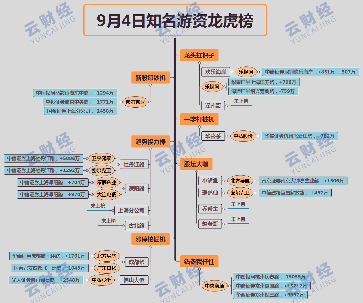 中央商场(600280)跌停,中国银河(601881)杭州庆春路出逃15055万,中泰证券常州惠国路接盘13212万,华西证券(002926)郑州经三路买入9997万。