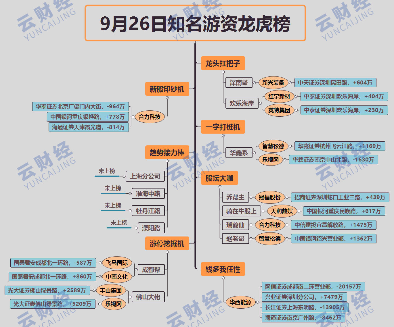 其他游资方面,瑞鹤仙买入合力科技(603917)1475万,赵老哥买入智慧松德(300173)1362万,乔帮主小买冠福股份(002102)439万,骑牛买入天润数娱(002113)617万。
