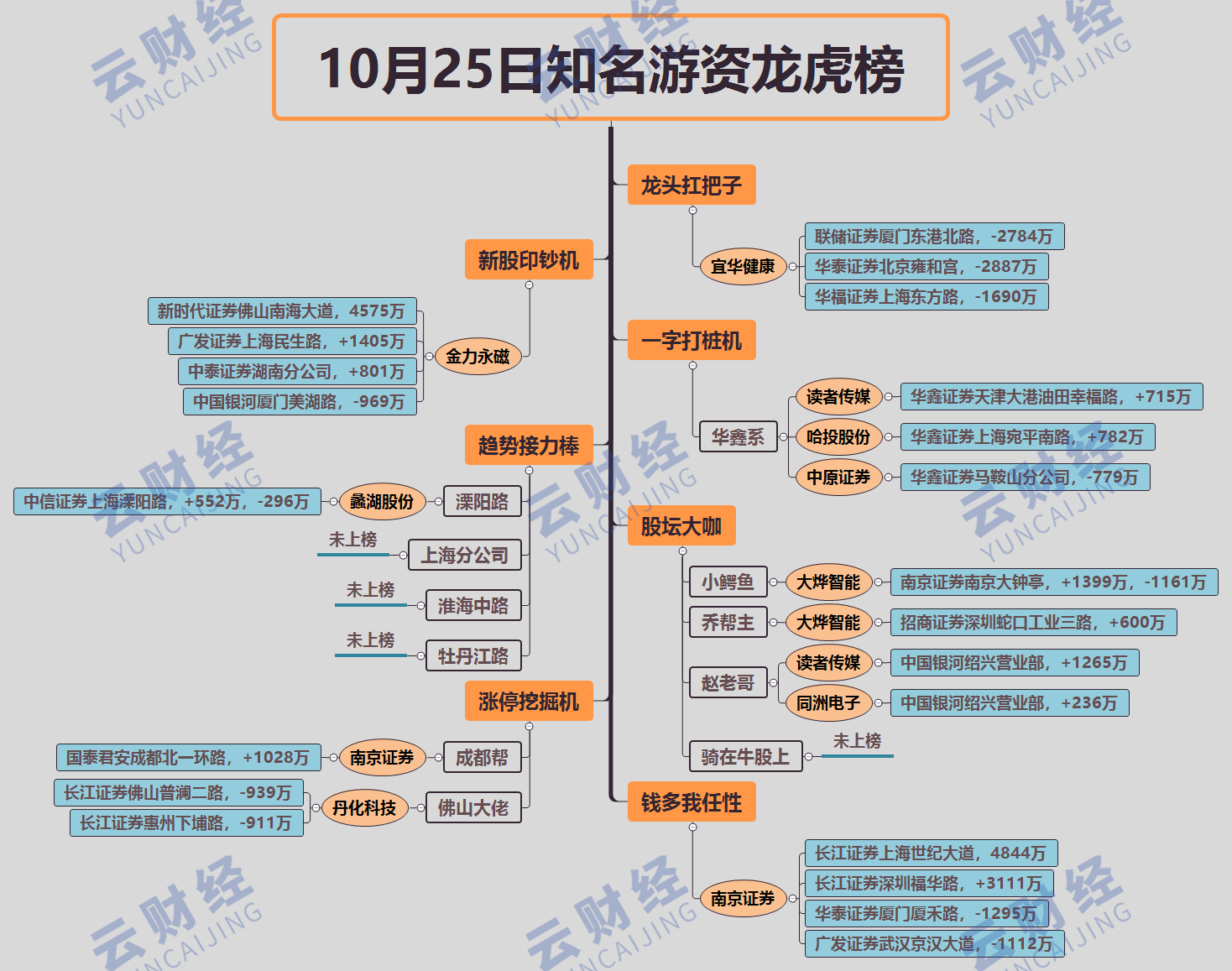 其他游资方面,小鳄鱼做T大烨智能(300670),买入1399万卖出1161万,乔帮主买入600万。佛山帮出货丹化科技(600844),两席位分别卖出939万、911万。
