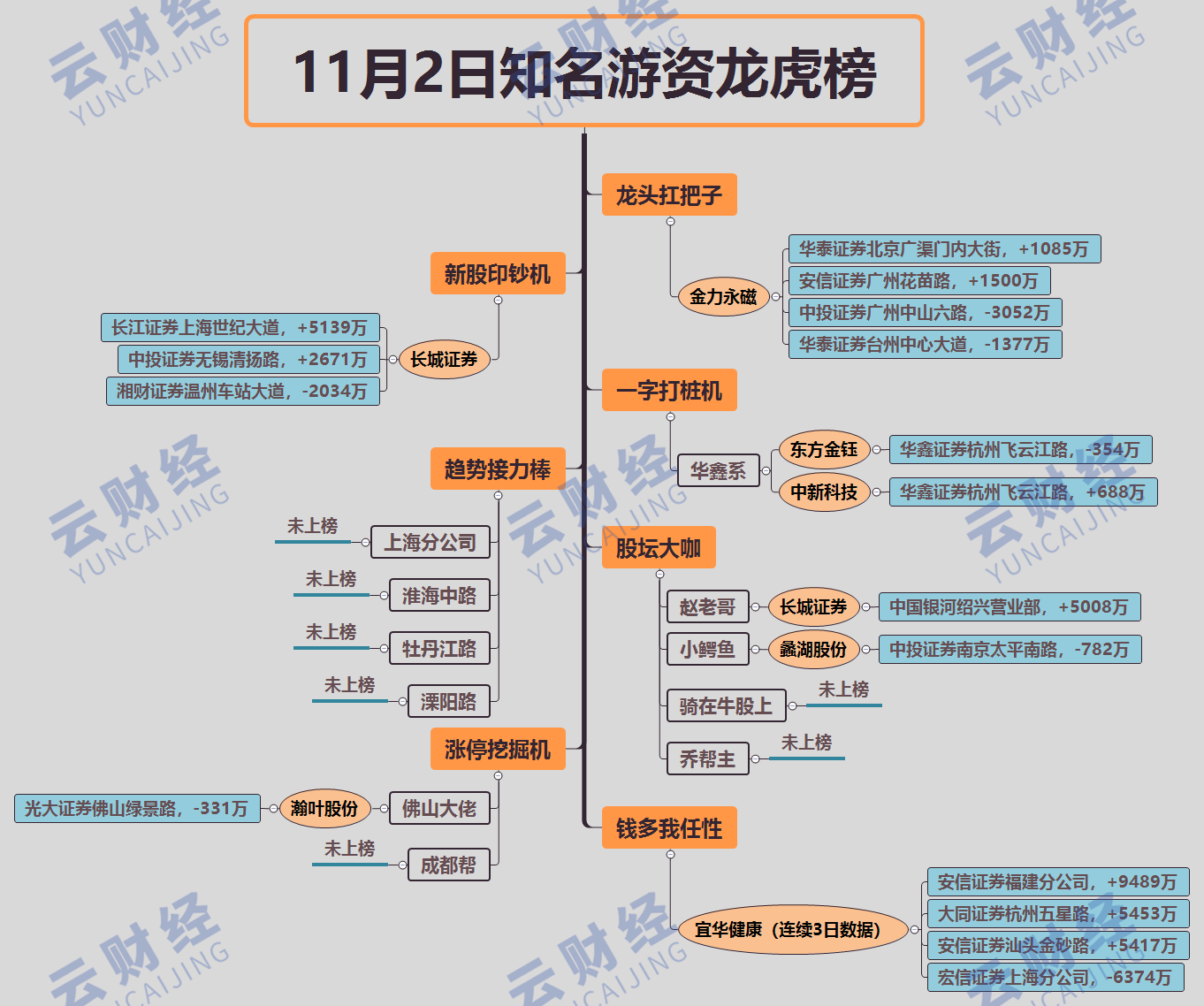 龙虎榜方面,长城证券(002939)开板后再度封板,长江证券上海世纪大道买入5139万,赵老哥买入5008万,中投证券无锡清扬路买入2671万,湘财证券温州车站大道卖出2034万。