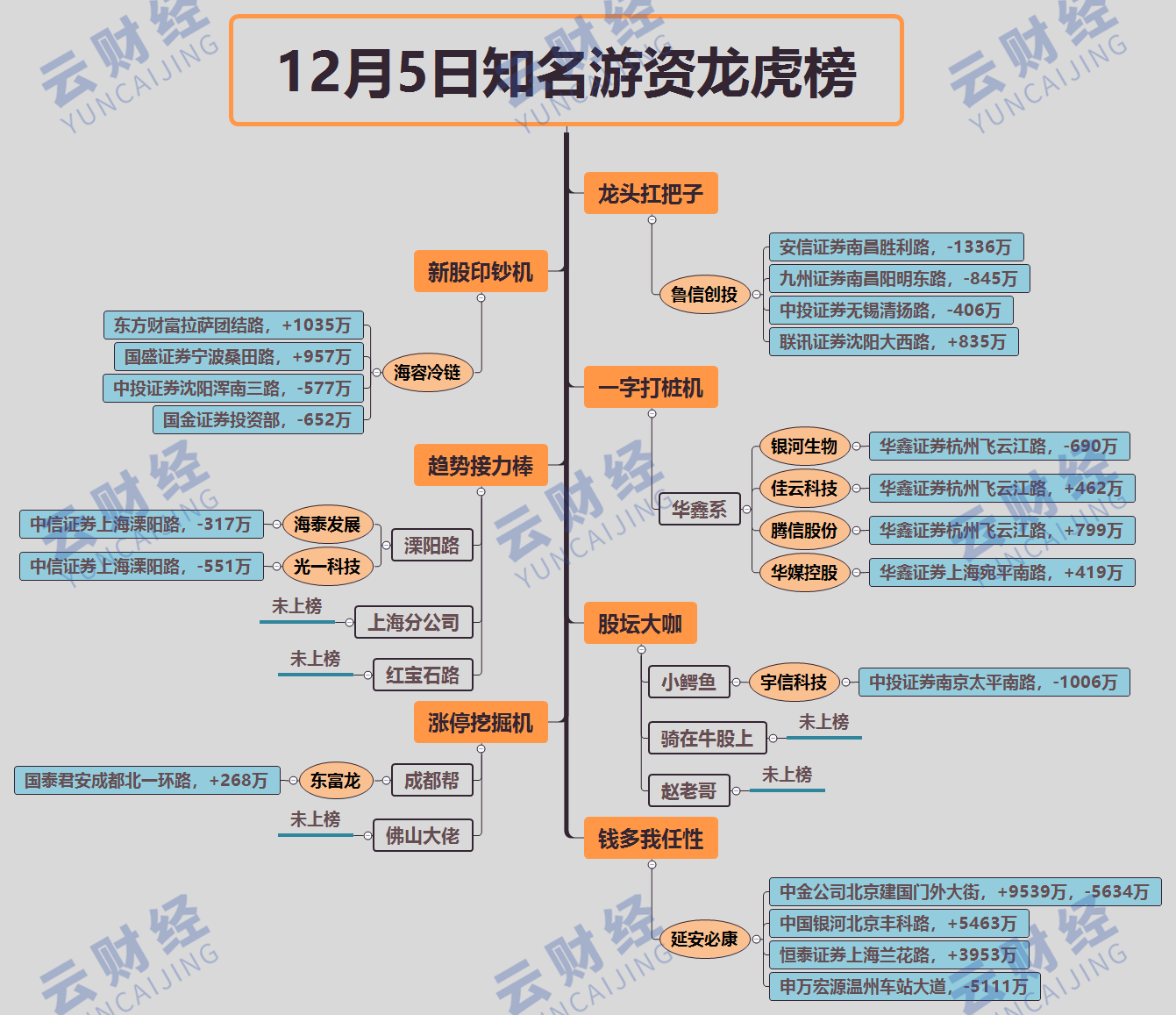 其他游资方面,小鳄鱼卖出宇信科技(300674)1006万,成都帮买入东富龙(300171)268万,中信证券上海溧阳路卖出海泰发展(600082)、光一科技(300356)各317万、551万。
