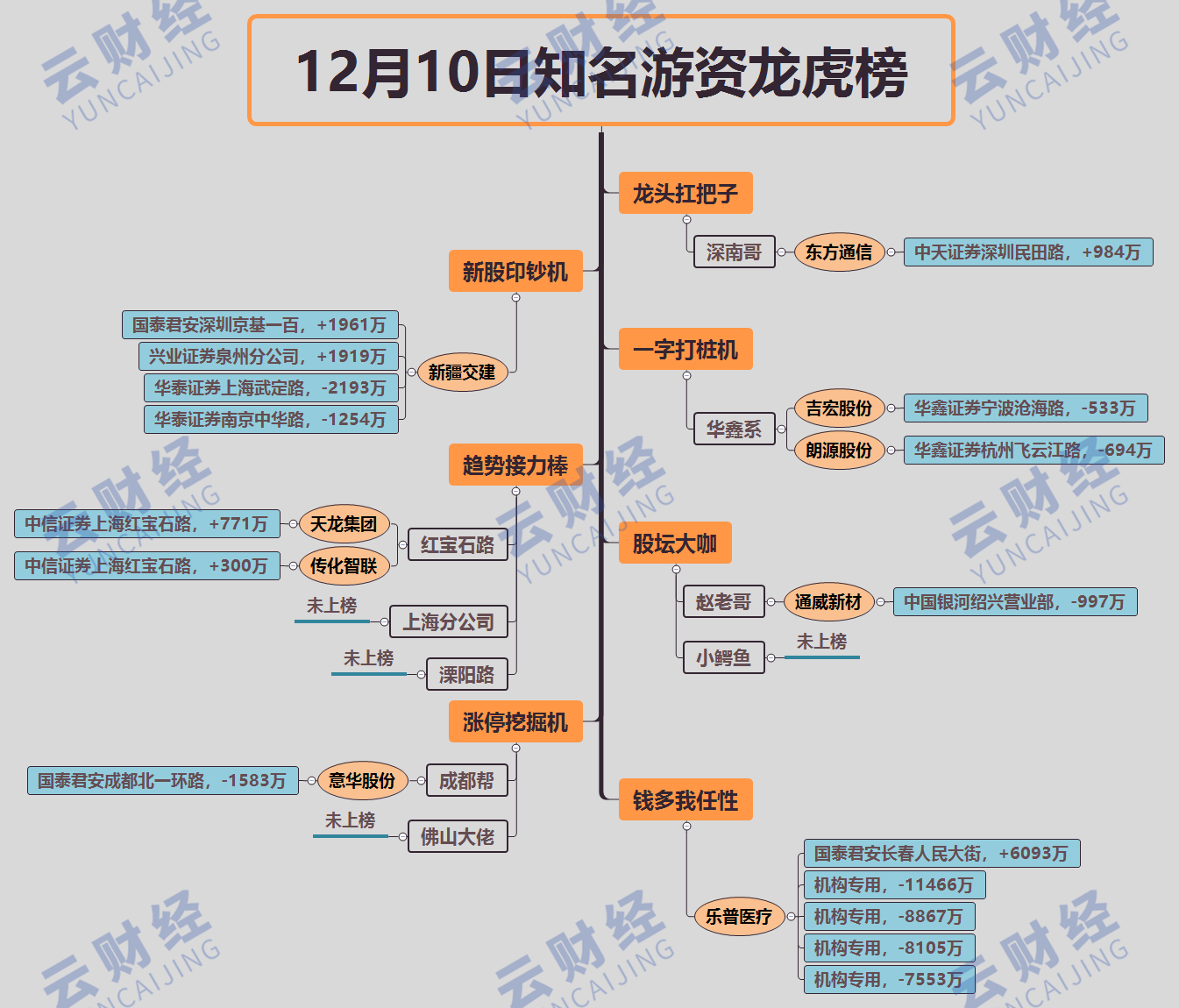 其他游资方面,成都帮获利卖出意华股份(002897)1583万,赵老哥卖出通威新材997万,深南哥买入东方通信(600776)984万。
