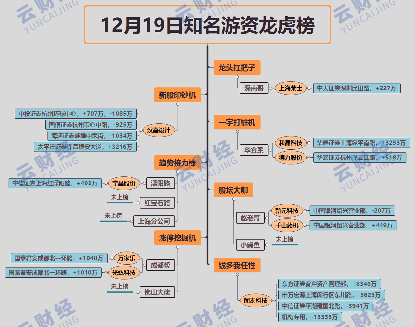其他游资方面,赵老哥买入千山药机(300216)449万,卖出新元科技(300472)207万,成都帮买入万家乐(000533)1048万,买入光弘科技(300735)1010万,华鑫上海宛平南路买入和晶科技(300279)3253万。