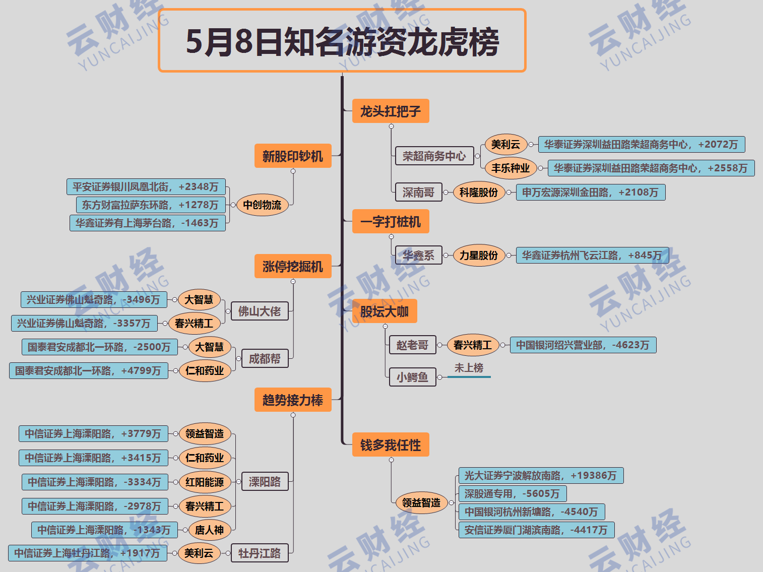 其他游资方面,赵老哥卖出春兴精工(002547)4623万,佛山帮卖出春兴精工(002547)、大智慧(601519)各3496万、3357万,成都帮买入仁和药业(000650)4799万,中信上海溧阳路卖出春兴精工(002547)2978万,买入仁和药业(000650)3415万。