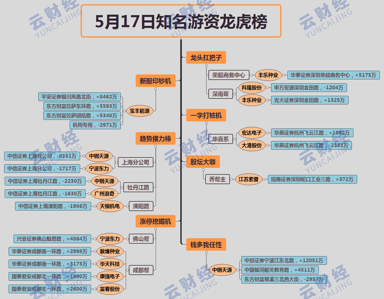 一线游资方面,荣超商务中心买入丰乐种业(000713)5175万,佛山帮买入宁波东力(002164)4864万,成都帮买入华天科技(002185)、敦煌种业(600354)各3175万、2998万,华鑫杭州飞云江路卖出大港股份(002077)2333万。