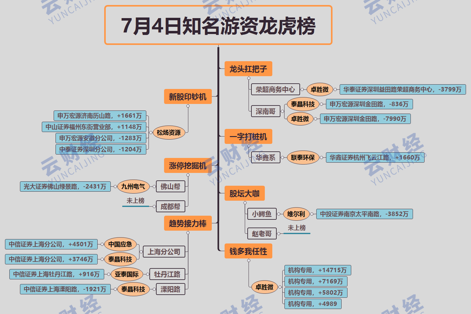 其他游资方面,小鳄鱼卖出维尔利(300190)3852万,中信上海分公司买入中国应急(300527)、泰晶科技(603738)各4501万、3746万,佛山帮卖出九州电气2431万。