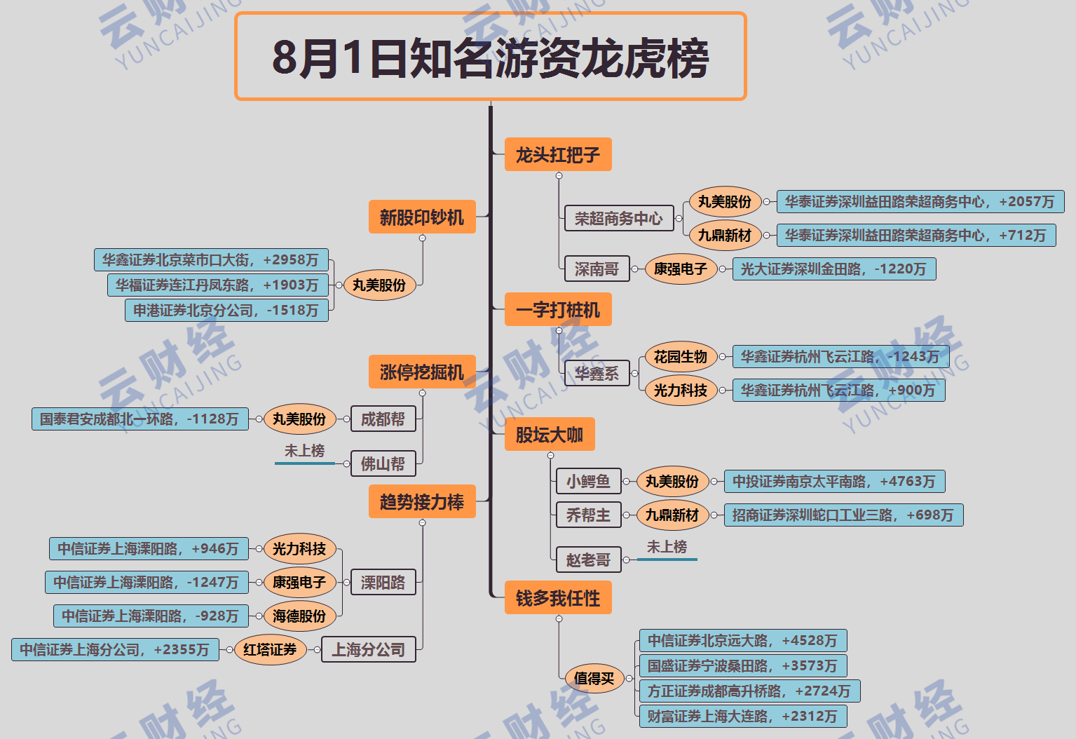 其他游资方面,中信上海分公司买入红塔证券(601236)2355万,深南哥卖出康强电子(002119)1220万,中信上海溧阳路卖出康强电子(002119)1247万,华鑫杭州飞云江路卖出花园生物(300401)1243万。