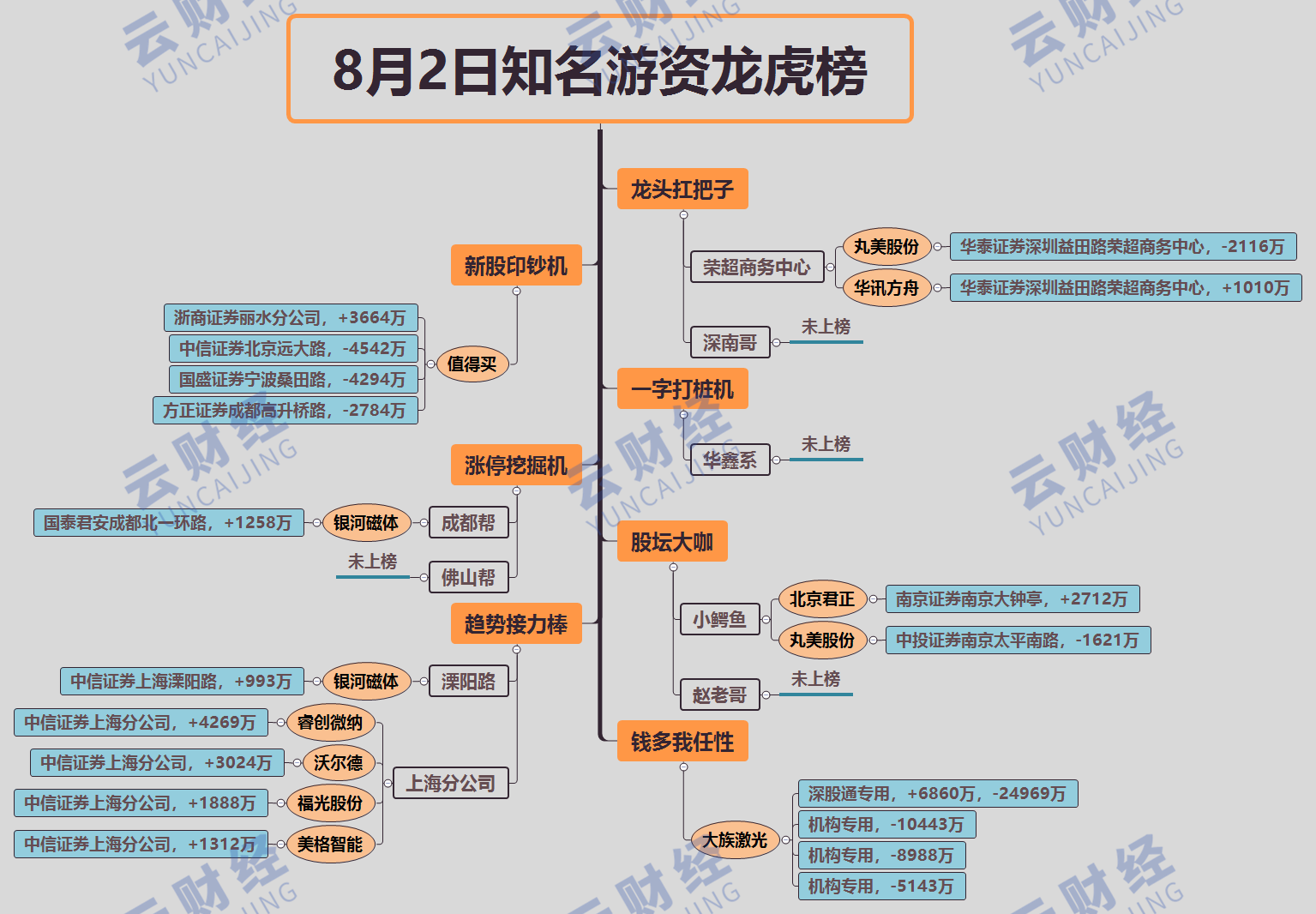 其他游资方面,中信上海分公司逆势大买,分别买入睿创微纳(688002)、沃尔德(688028)、福光股份(688010)、美格智能(002881)各4269万、3024万、1888万、1312万,小鳄鱼买入北方君正2712万卖出丸美股份(603983)1621万,成都帮买入银河磁体(300127)1258万,荣超商务中心卖出丸美股份(603983)2116万买入华讯方舟(000687)1010万。