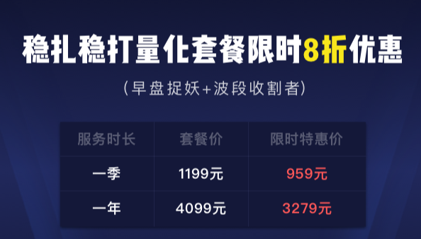 限时特惠:现购买稳扎稳打套餐(波段收割者+早盘捉妖),特享8折优惠。