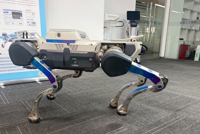 在四川省人工智能研究院某人工智能科技公司,几只造型各异的机器狗正在测试区里来回穿梭——有的钻入模拟管道执行清淤作业,有的举起机械臂对腐蚀性环境进行检测。另一侧工作台上,接入AI大模型的玩偶刚完成调试,即将走进景区与游客互动。
