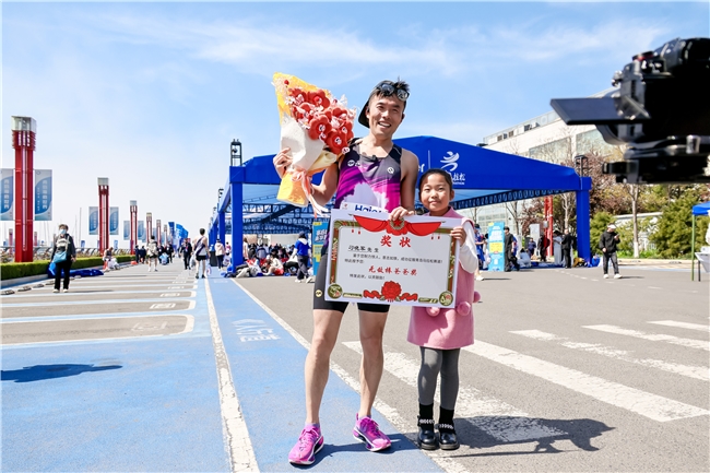 阳光洒在父女俩的身上,小刁老师手中的小红花也显得格外耀眼。未来,他还会继续奔跑在青马赛道,带着家人的陪伴与海尔的温暖,把热爱与坚持,一直跑向更远的前方。