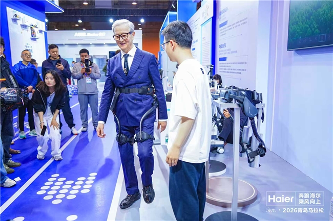 在不久前结束的海尔·2026青岛马拉松活动中,一支穿戴海尔外骨骼机器人W3的展示方阵亮相赛场,引起不少关注。在同期举办的马拉松博览会上,海尔外骨骼机器人W3也吸引了众多跑者和运动爱好者前来试穿,被称为助力运动的硬核装备。