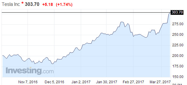 消息面上,特斯拉公司(TeslaInc)4月2日公布了2017年第一季度的销售情况。公司第一季度交付了1.345万辆轿车型Model S电动车,以及11,550辆SUV型Model X电动车,精确的交付量为2.5418万辆。一季度创下单季度销售纪录,销售相比去年同期上涨69%,远超预期。