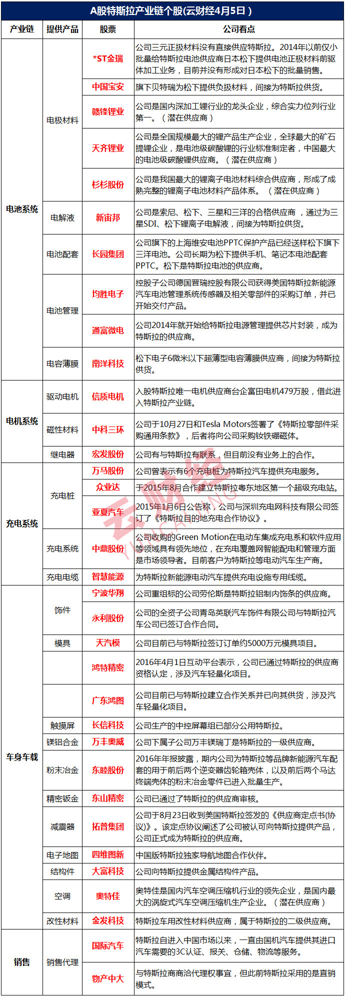 特斯拉股价持续攀升,A股中特斯拉概念股近期有望持续活跃。云财经将A股中可能或已经为特斯拉供货的股票总结出来,供投资者参考。